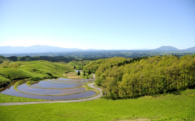 これから産山村は広大な草原が新緑に染まり、ゆっくりとした時間を過ごすには最高の時期です。