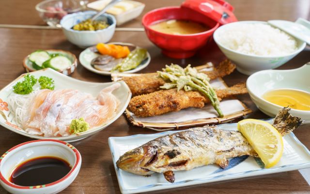 | 料金 | 定食 1,500円(ごはん、味噌汁、小鉢、ヤマメの刺身・塩焼・唐揚げ) |