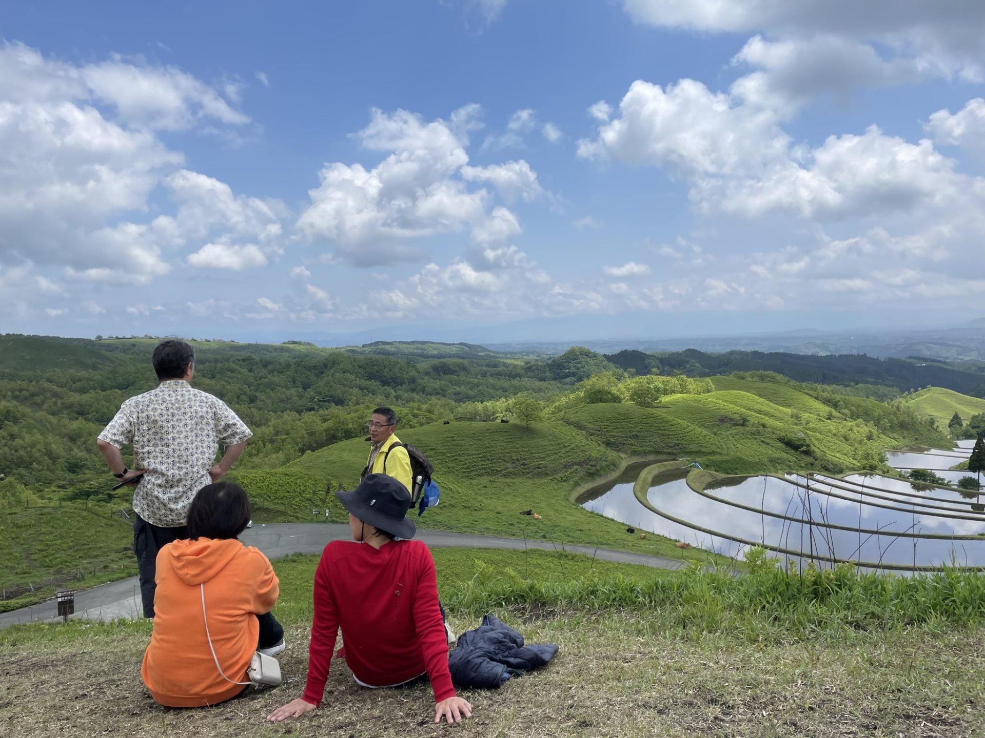 扇棚田の展望所からは、阿蘇五岳、久住連山、祖母山が織りなす絶景をご覧いただけます。天候に恵まれれば、忘れることができない美しい景色が目の前に広がります。